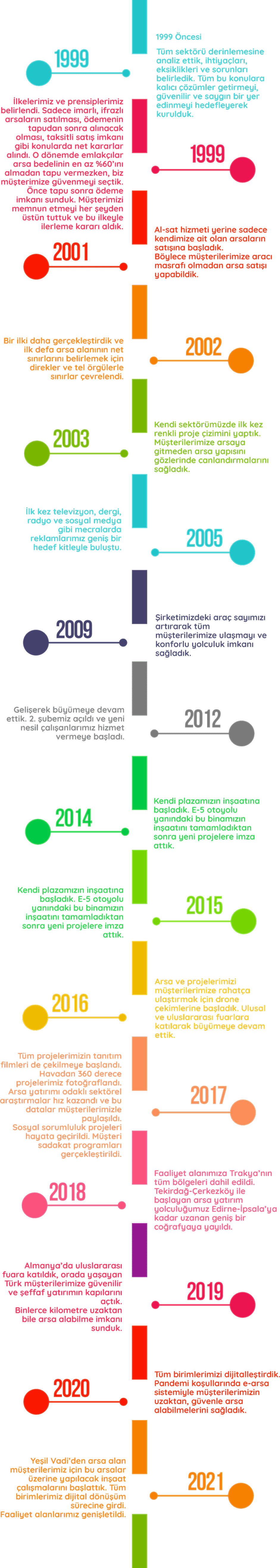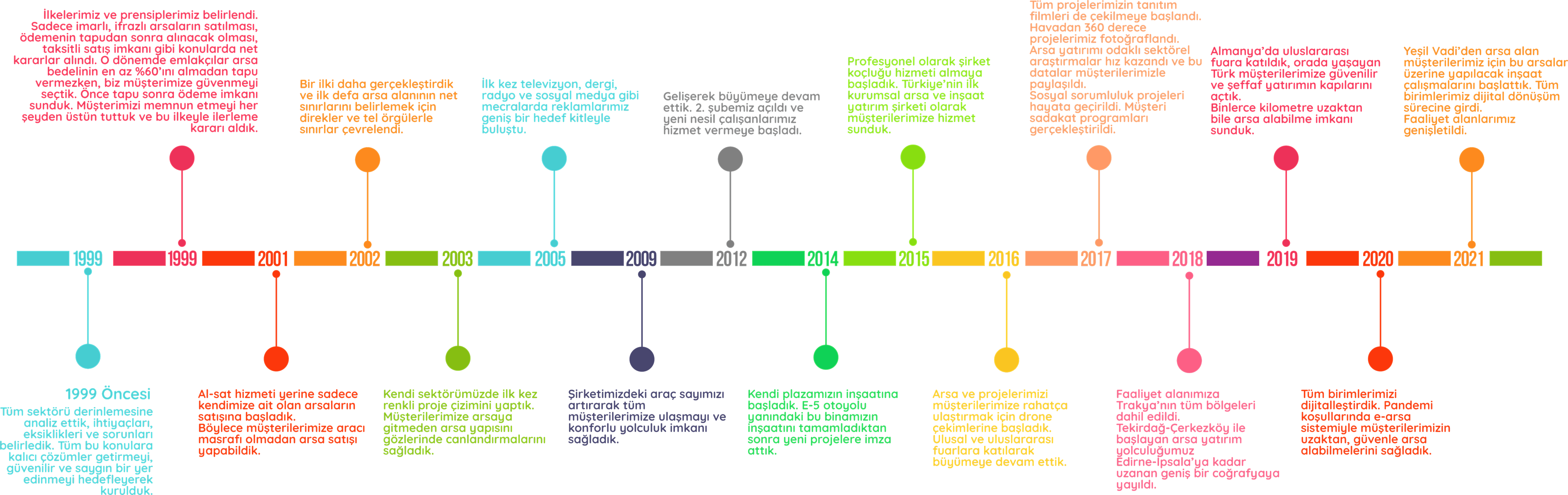 1999 yılında Rafet Orhan ve Cihan Demirel tarafından kurulduk. Köklü değerlerimiz ve ilkelerimizle “Türkiye’nin Tek Kurumsal Arsa Ofisi” unvanını taşımaktayız. Onlarca yıllık geçmişimize sektörde iz bırakan birçok yeniliği sığdırdık.